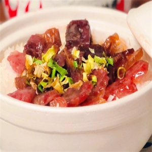 煲仔饭的传统品种主要有豆豉排骨饭、腊味饭、滑鸡饭、黄鳝饭、田鸡饭、咸鱼香肉饭等,正宗的要用丝苗香米,取其坚实细密晶莹,口感好、滋味浓又易被汤汁浸烂。一般而言,生米生菜一锅煮就,以豆豉排骨饭为例,洗米上锅,煮六七成熟时揭开盖子,加入调好味汁的生排骨,沿煲边淋入酱汁香油,微火焖至饭收水,起锅巴。起盖后加入香葱,铺上青绿油菜,如果是黄鳝或田鸡时间可短一些,若是牛肉还要再长一点,要注意的是饭菜要兼顾,这就是火候了。